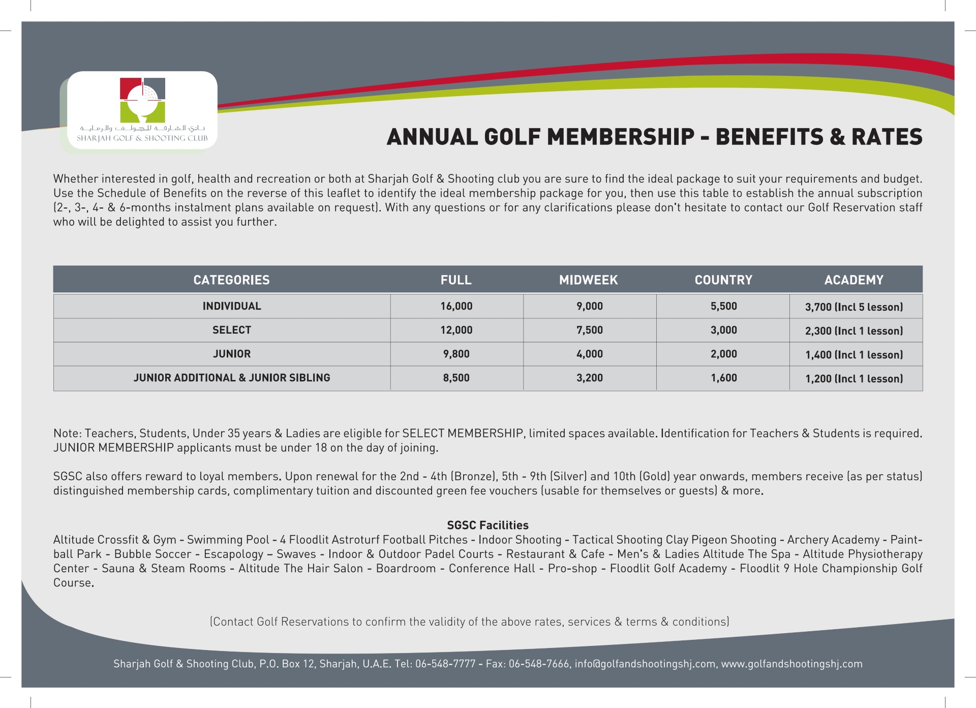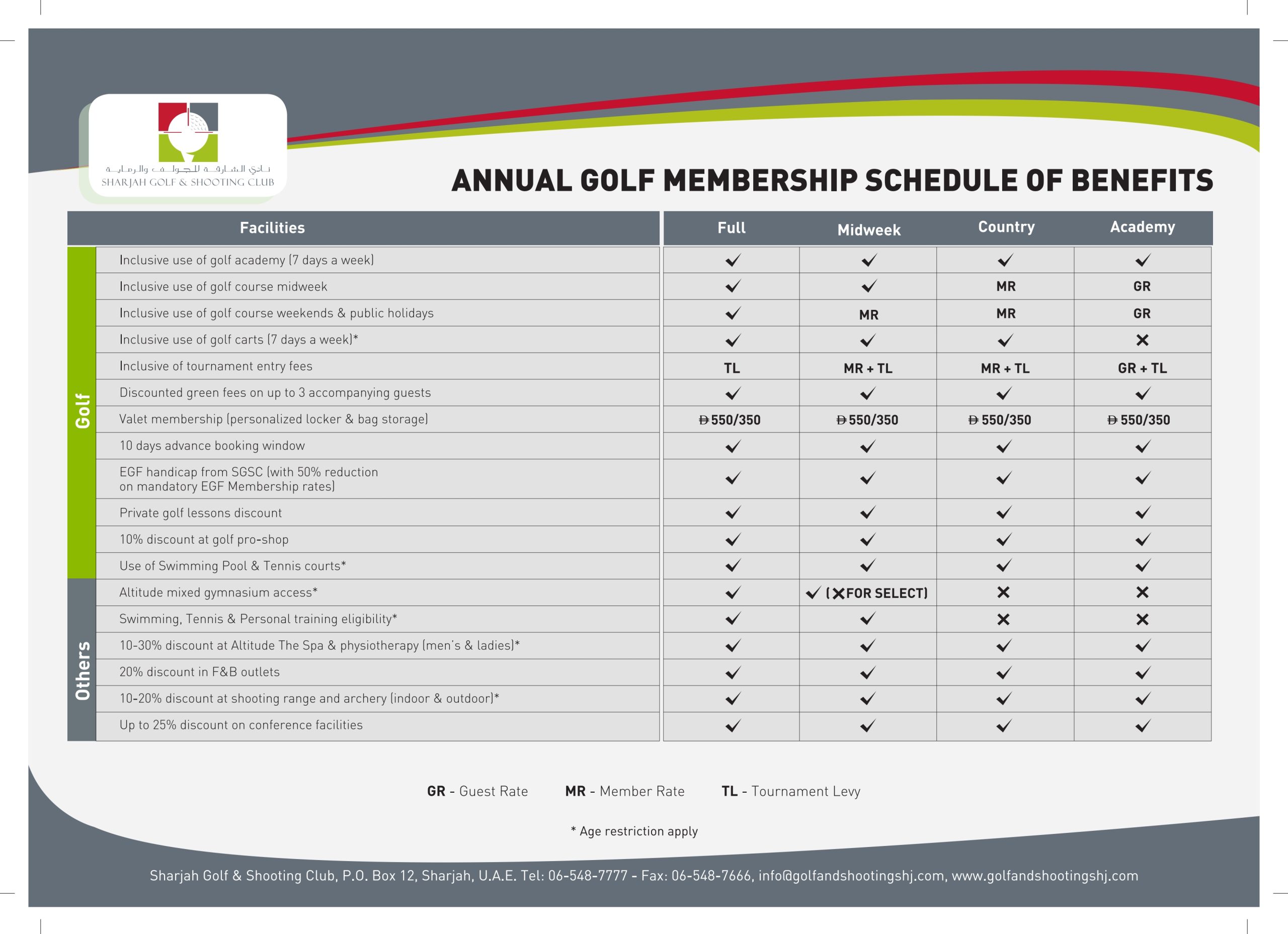 - Members are entitled to use the club facilities and receive discounts in accordance with the bene ts allocated to respective membership categories as indicated on the table of discounts.