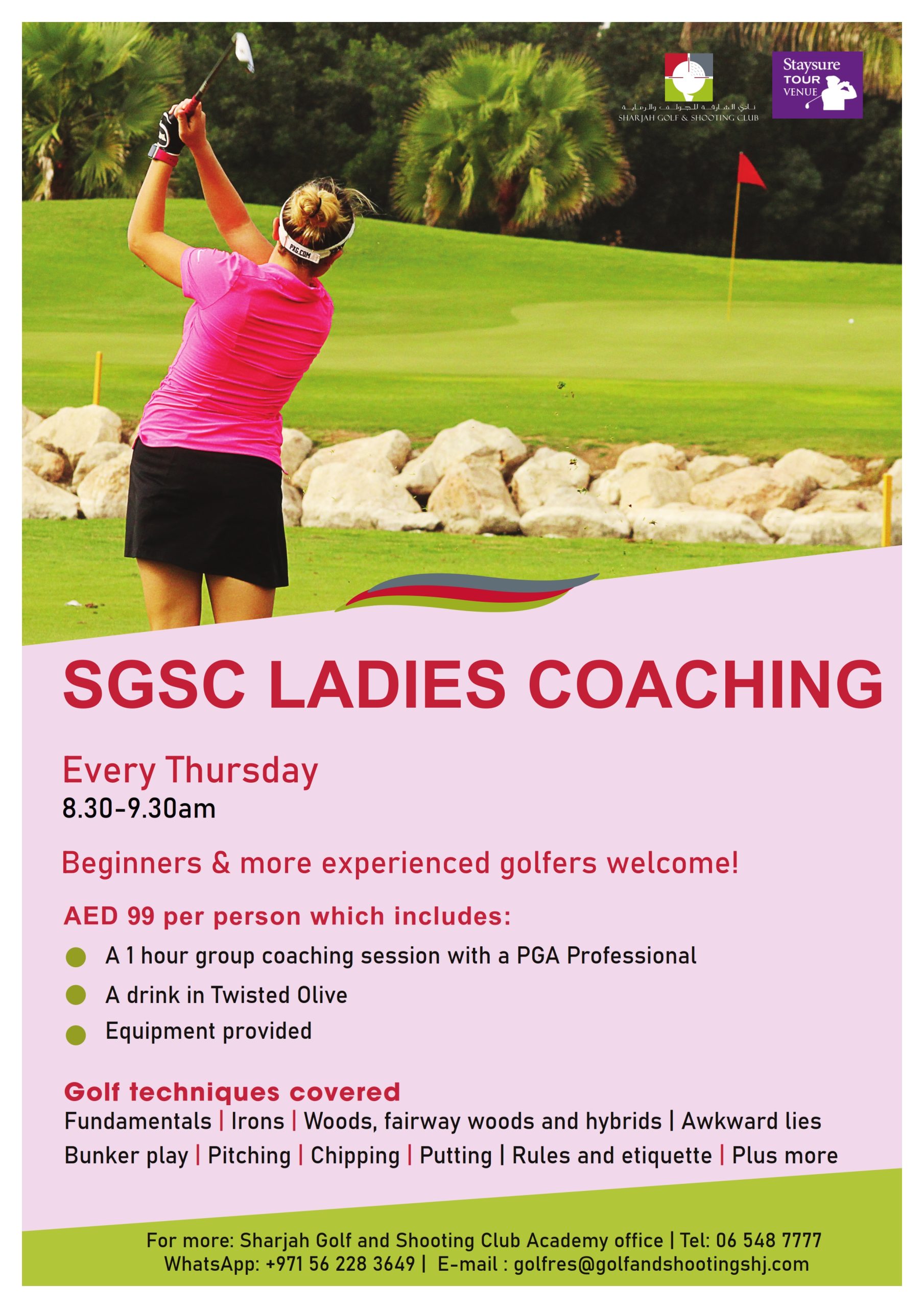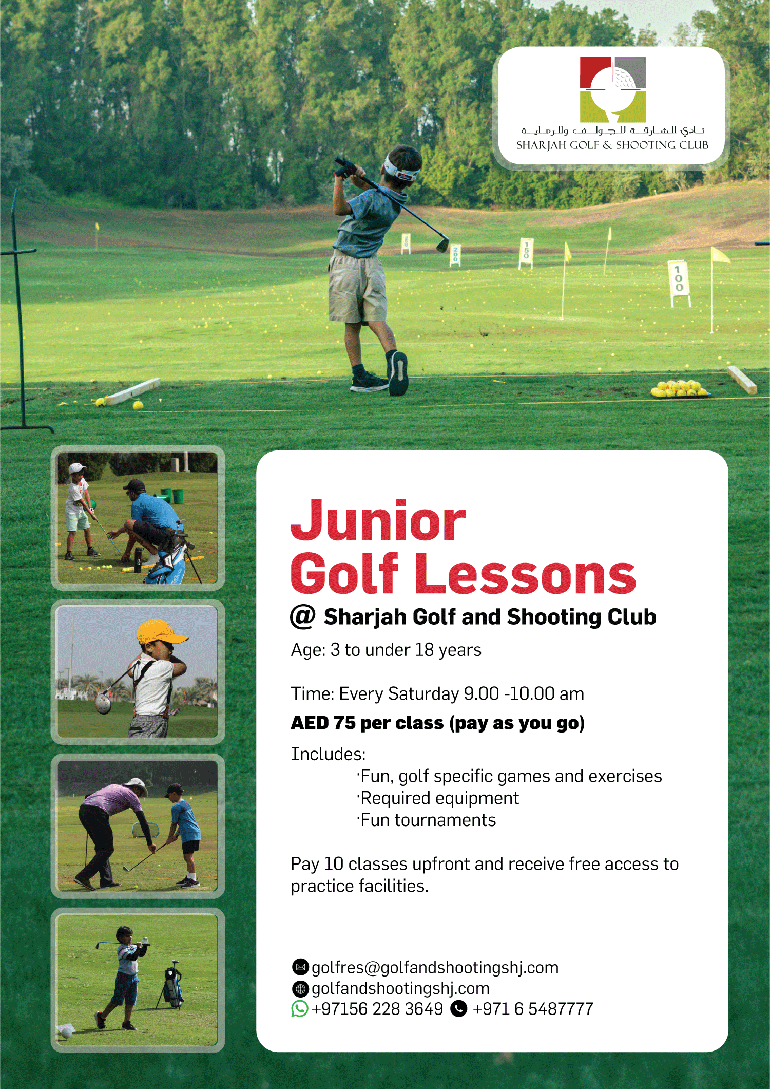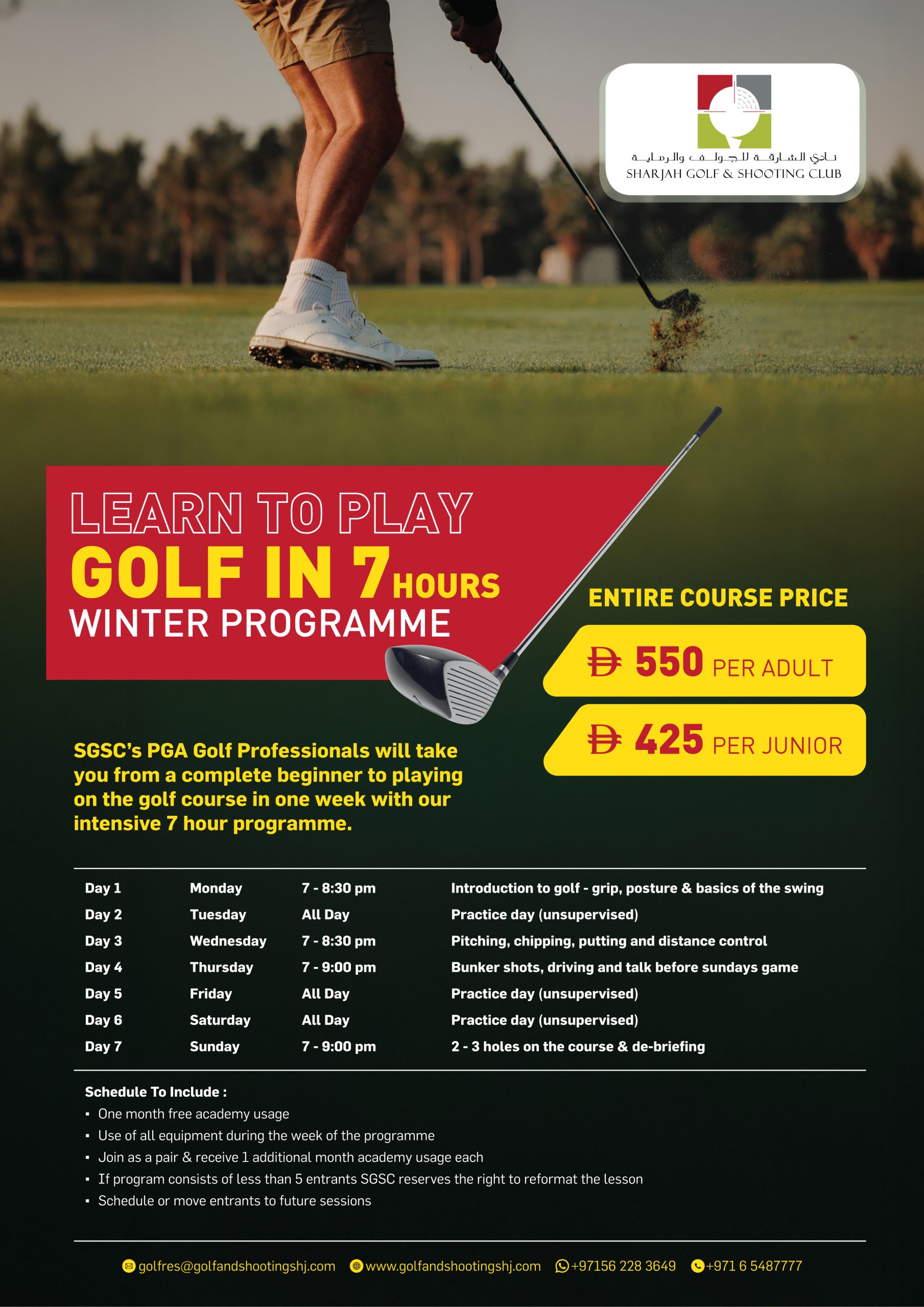 CORPORTE GOLF CLINIC AVAILABLE, CONTACT GOLF ACADEMY. +971 6 548 7777